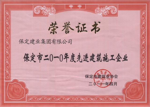 保定市2010年度先進建筑施工企...