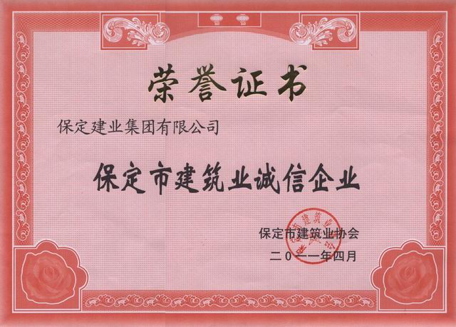 2010年度保定市建筑業誠信企業