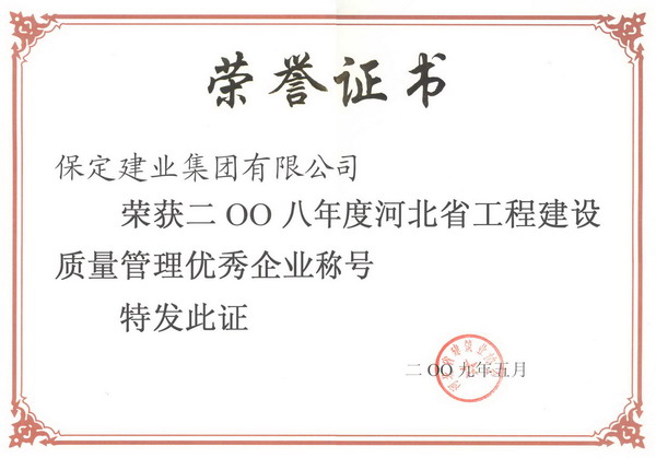 08年度省工程質量管理優秀企業