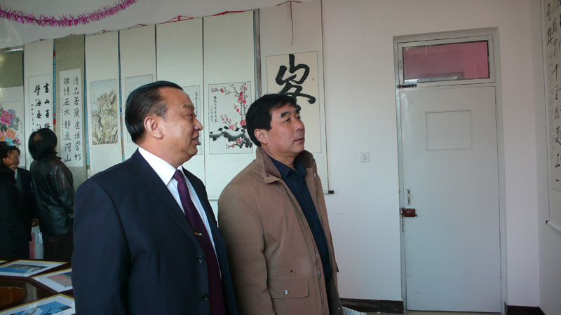 董事長張?zhí)m柱陪同建設(shè)局領(lǐng)導參觀十周年書畫展