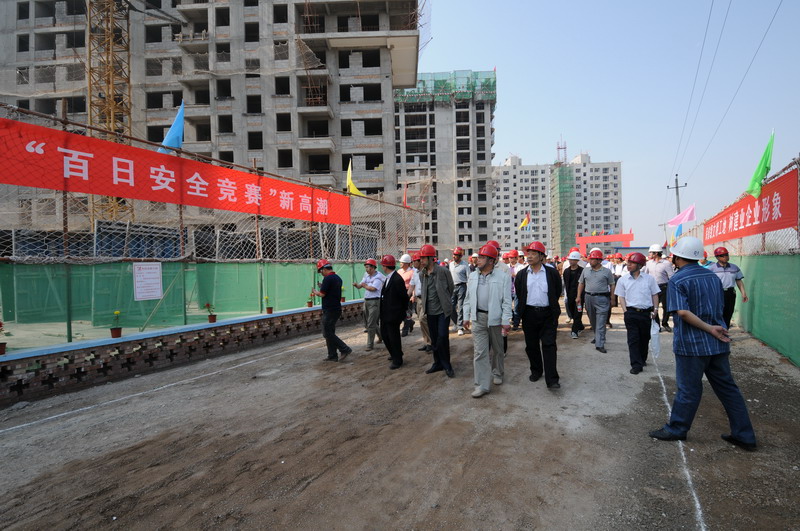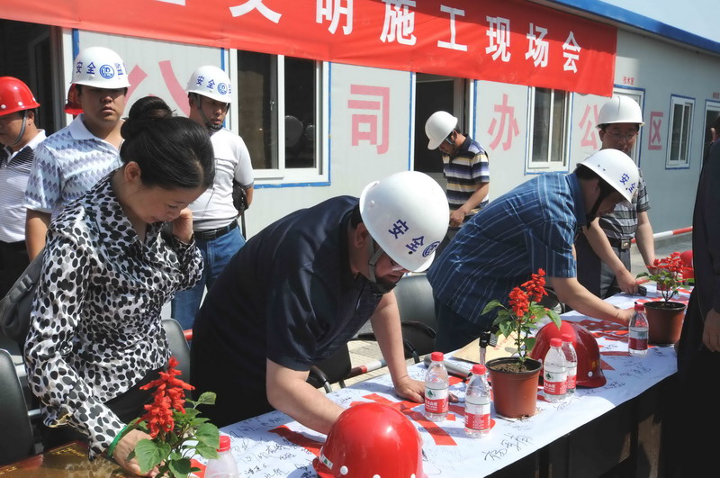 2010年6月4日,張家口住建局在我集團(tuán)六公司承建的張家口親河苑小區(qū)項(xiàng)目部召開了建筑施工安全文明施工現(xiàn)場(chǎng)會(huì),張家口市住建局局長(zhǎng)李義、安監(jiān)站站長(zhǎng)張芝祥及各區(qū)縣住建局、安監(jiān)站負(fù)責(zé)人,施工、監(jiān)理單位負(fù)責(zé)人共72個(gè)單位220余人出席了會(huì)議,并在我集團(tuán)安全百日賽的宣傳條幅上了簽字。