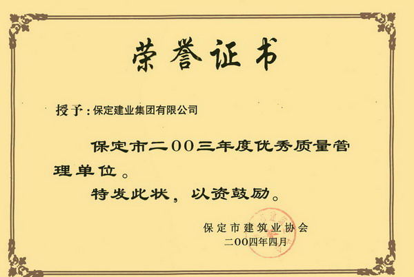 03年度保定市優秀質量管理單位